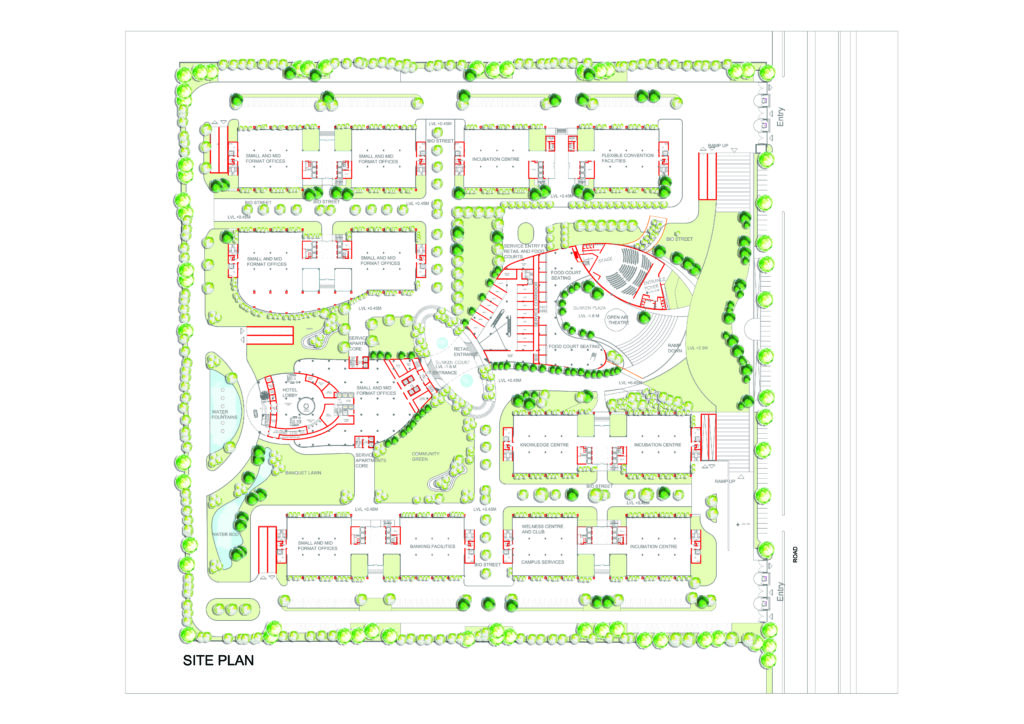 SpireTech- IT ParkLocation: Noida, IndiaTypology: Mixed Use, CommercialScope of Work: Concept Development